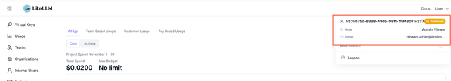• Value: proxy_admin_viewer (must match one of the LiteLLM role values exactly)