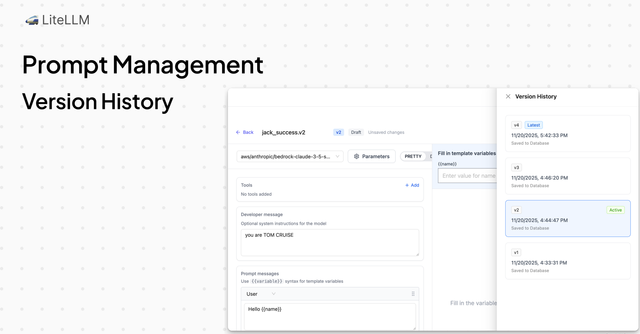• Version Control: Automatic versioning for every prompt update with complete version history tracking and rollback capabilities